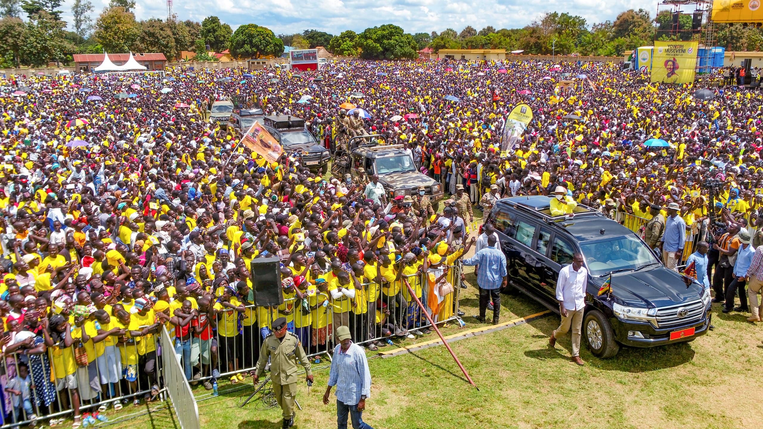 Olunnaku olw’eggulo, Yoweri Kaguta Museveni owa National Resistance Movement (NRM) yabadde mu disitulikiti y’e Adjumani ate akawungeezi yabadde mu disitulikiti y’e Amuru.